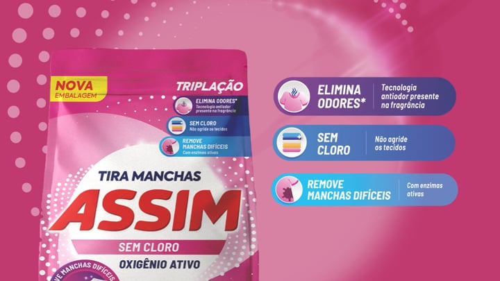 Desenvolvido para a marca de limpeza Assim, no qual fui responsável pela criação do design visual e pela animação, explorando movimento e ritmo para valorizar o produto e a comunicação da marca.